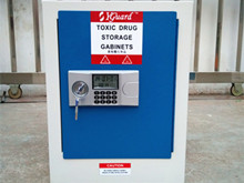 劇毒藥品柜帶電子密碼鎖+機(jī)械鎖,帶防盜報(bào)警功能,雙鎖兩人管理,開(kāi)門時(shí)需兩人同時(shí)在場(chǎng),符合易制毒化學(xué)品儲(chǔ)存管理要求。